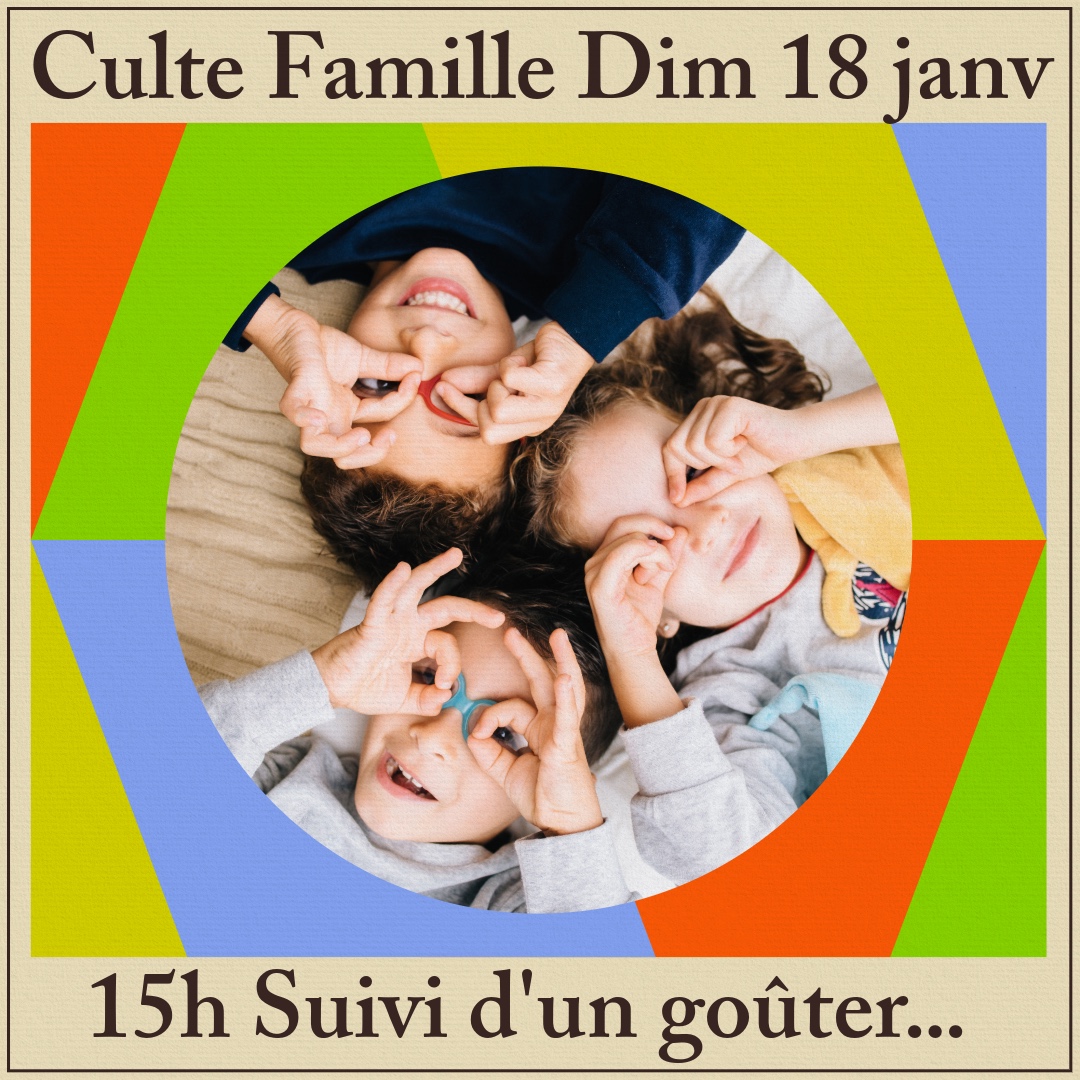 L’après-midi à 15h, culte famille suivi d’un goûter.